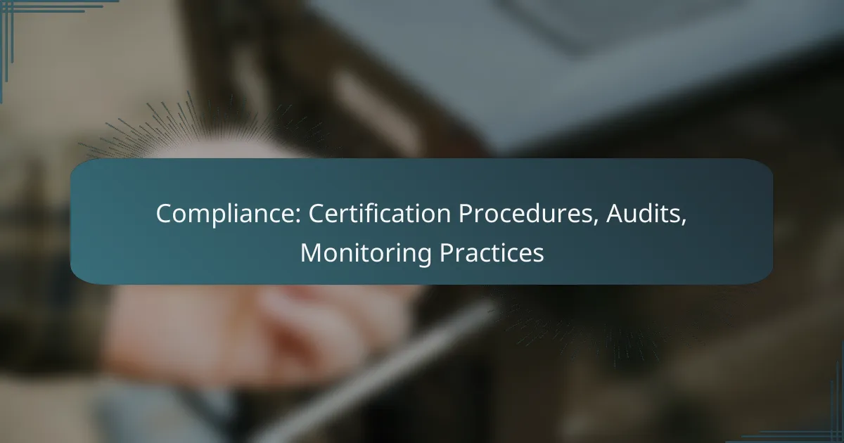 Compliance processes, such as certification procedures, audits, and monitoring practices, are essential for ensuring an organisation’s compliance and quality. Certification procedures involve several stages that ensure all requirements are met. Audits provide various types of inspections that serve specific needs, while monitoring practices ensure that the organisation’s operations consistently adhere to rules and standards.